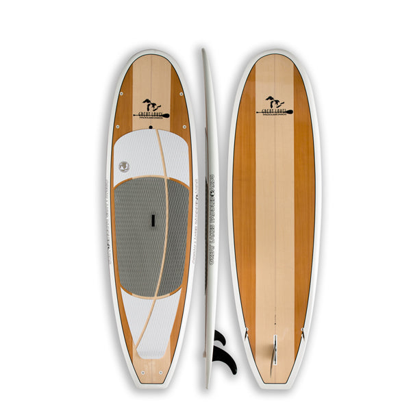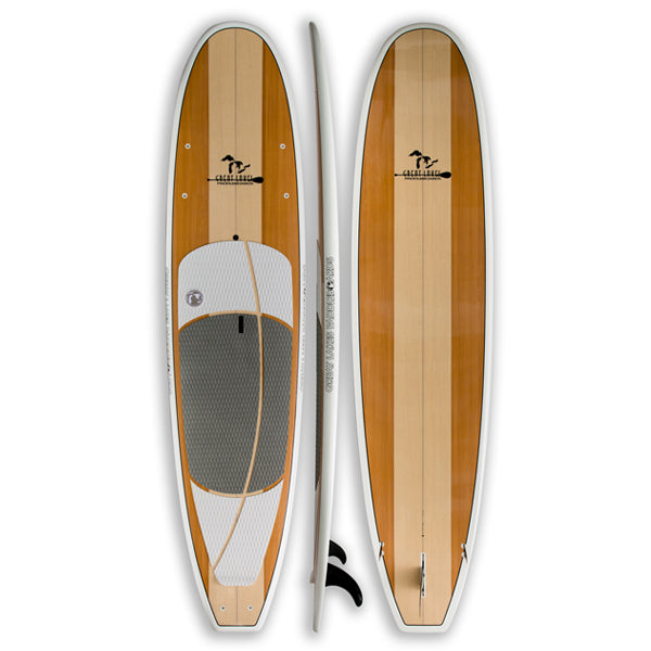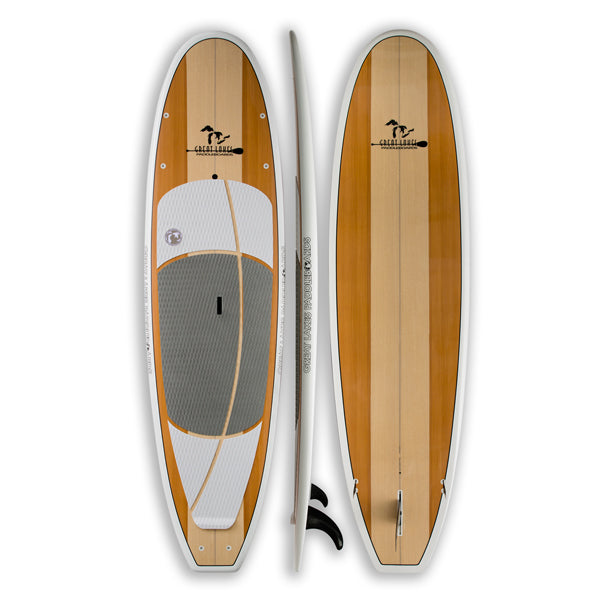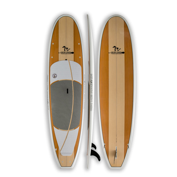 The Woody is our perfect all around SUP. Both feature fiberglass/foam surfboard construction and comfy EVA top pads. The Woody features a 3-fin Thruster configuration and a sleek, slim shape that cuts through the water and is designed to be as easy to ride hard and fast as it is on a quiet evening paddle.